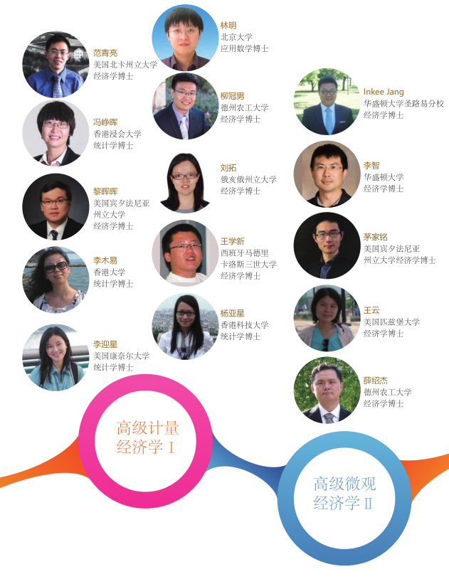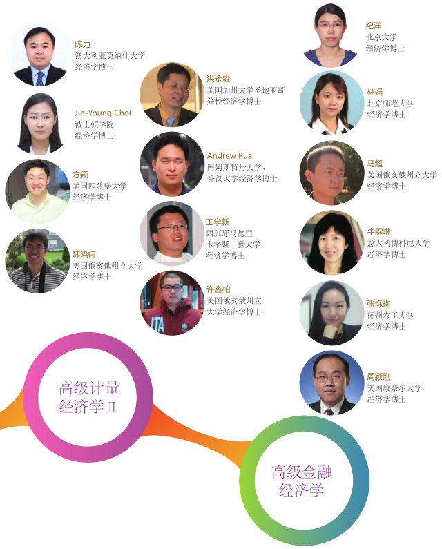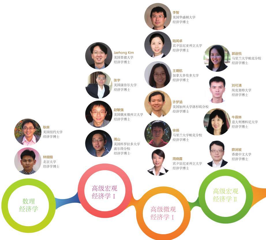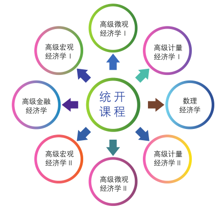 经济学科研究生课程体系按照“强化基础、注重能力、面向前沿、提高素质、因材施教、分流培养”的原则设置。第一学年学术型硕士生和博士生课程贯通,由学院统一开设经济学系列平台课程,必修课8门,培养学生扎实的经济学基础,采用全英文教学;第二年开设专业课,实行模块制教学体系。必修课严格按照硕博专业设置学位课程序列,选修课在经济学院与王亚南经济研究院的范围内选修。课程设置之外还穿插了学术讲座、短学期课程、中期分流、预答辩等其它教学和培养环节,拓宽学生的国际化视野和培养学生的良好学术素养。